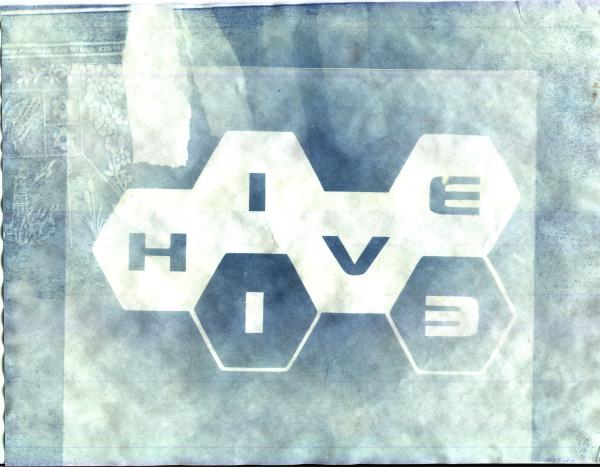 The gradient in the top left is a strip of paper that I moved away at periodic intervals. I placed several strips of paper to the right but they were removed first and aren’t visible here. The Hive13 logo also has a faint image to the left, probably from me moving the print early in the exposure and jolting the negative a little.